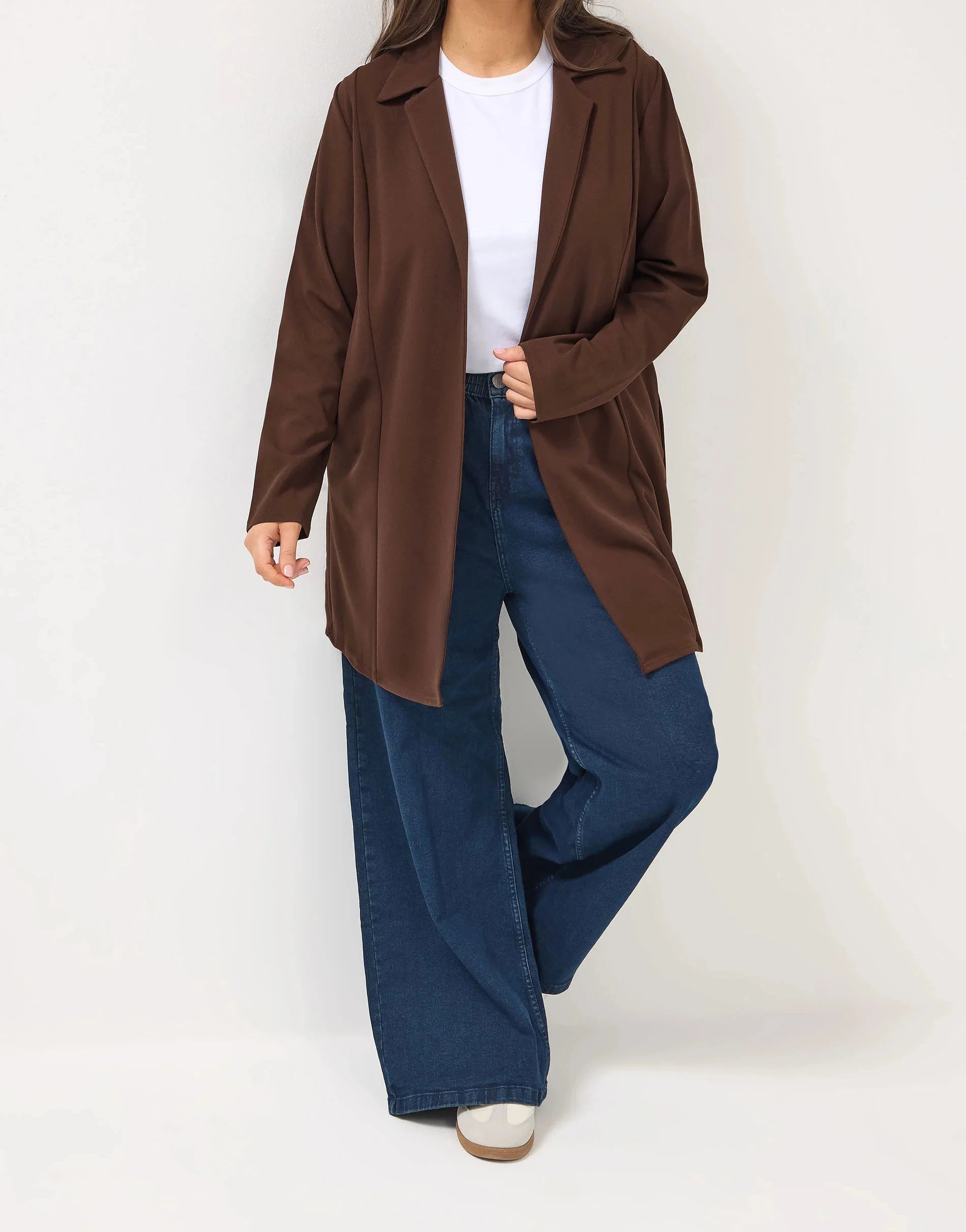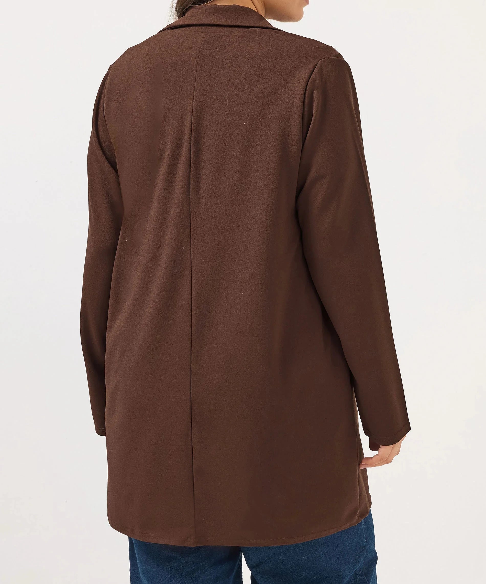 Blazer long marron à col tailleur