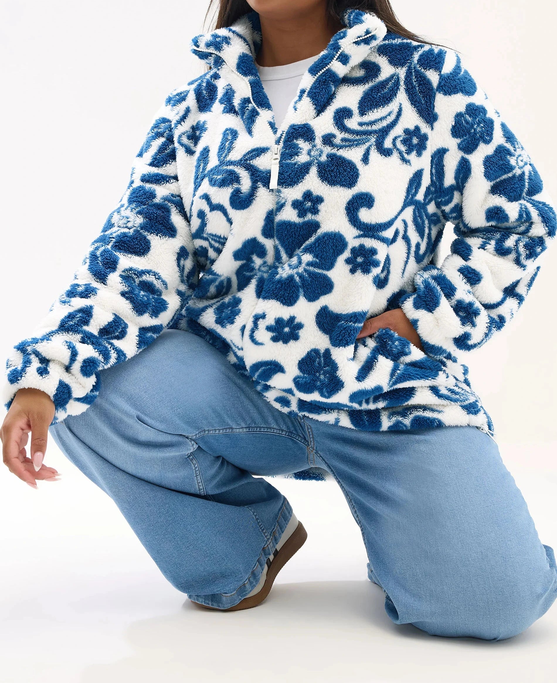 Alliez chaleur, confort et élégance avec cette veste polaire blanche à imprimé floral.